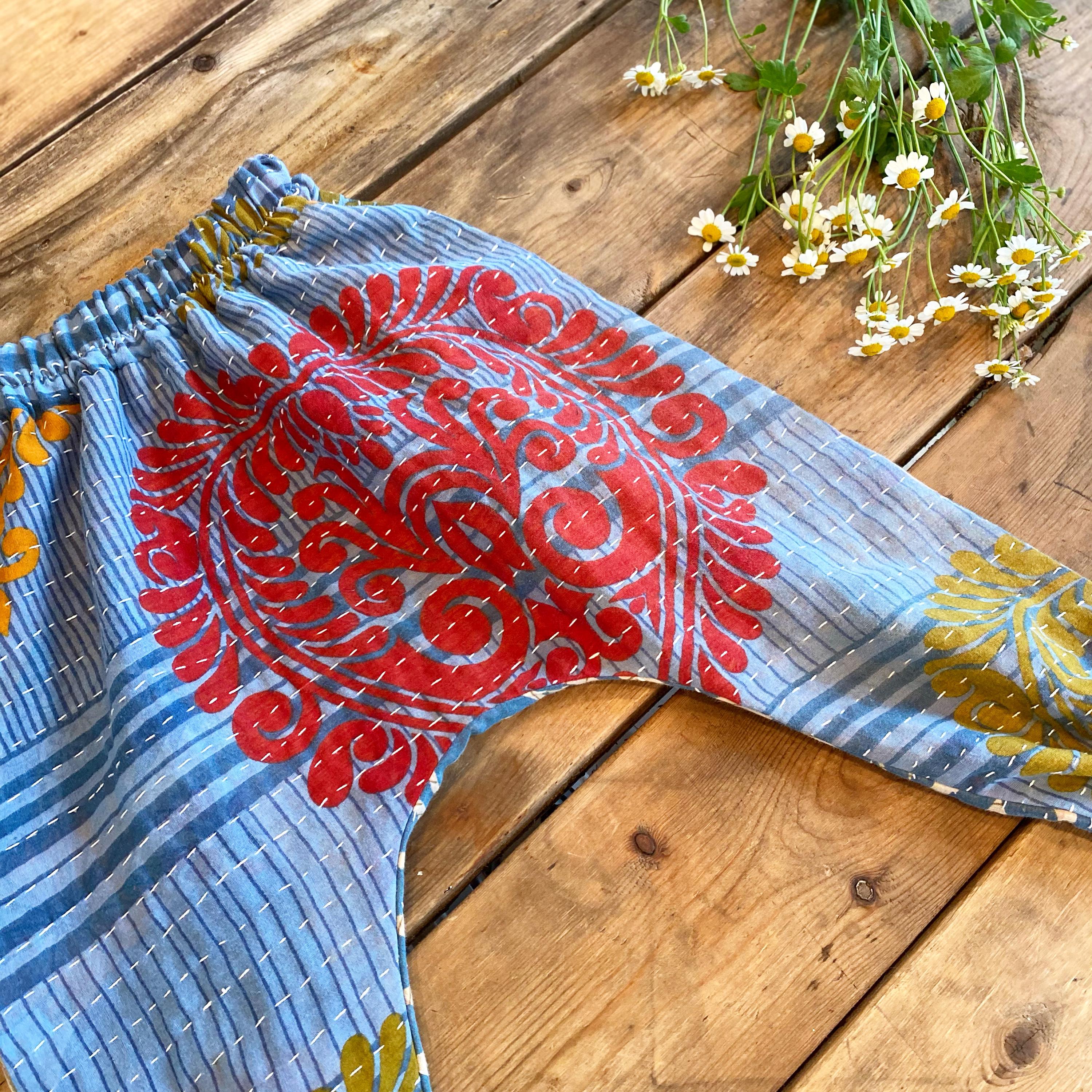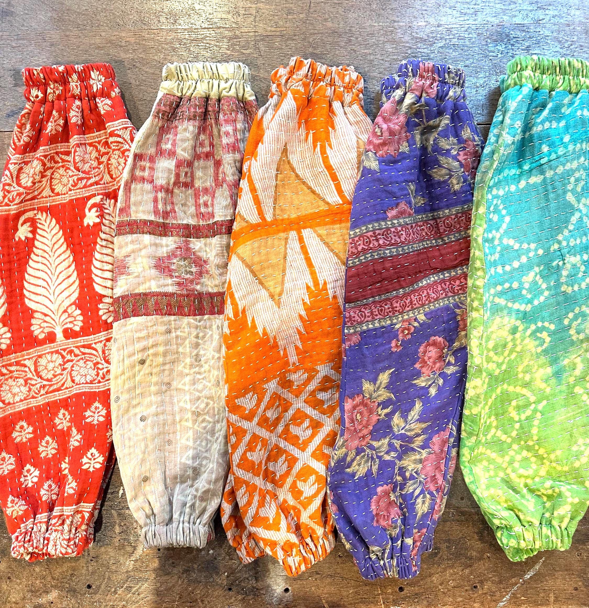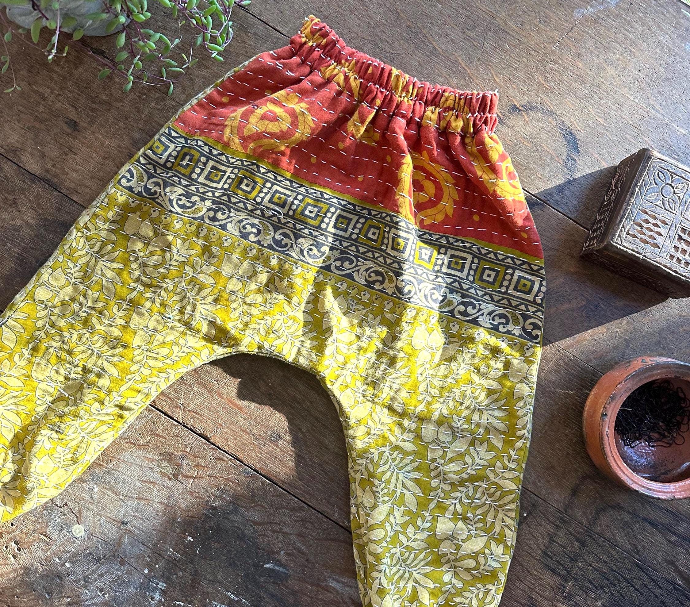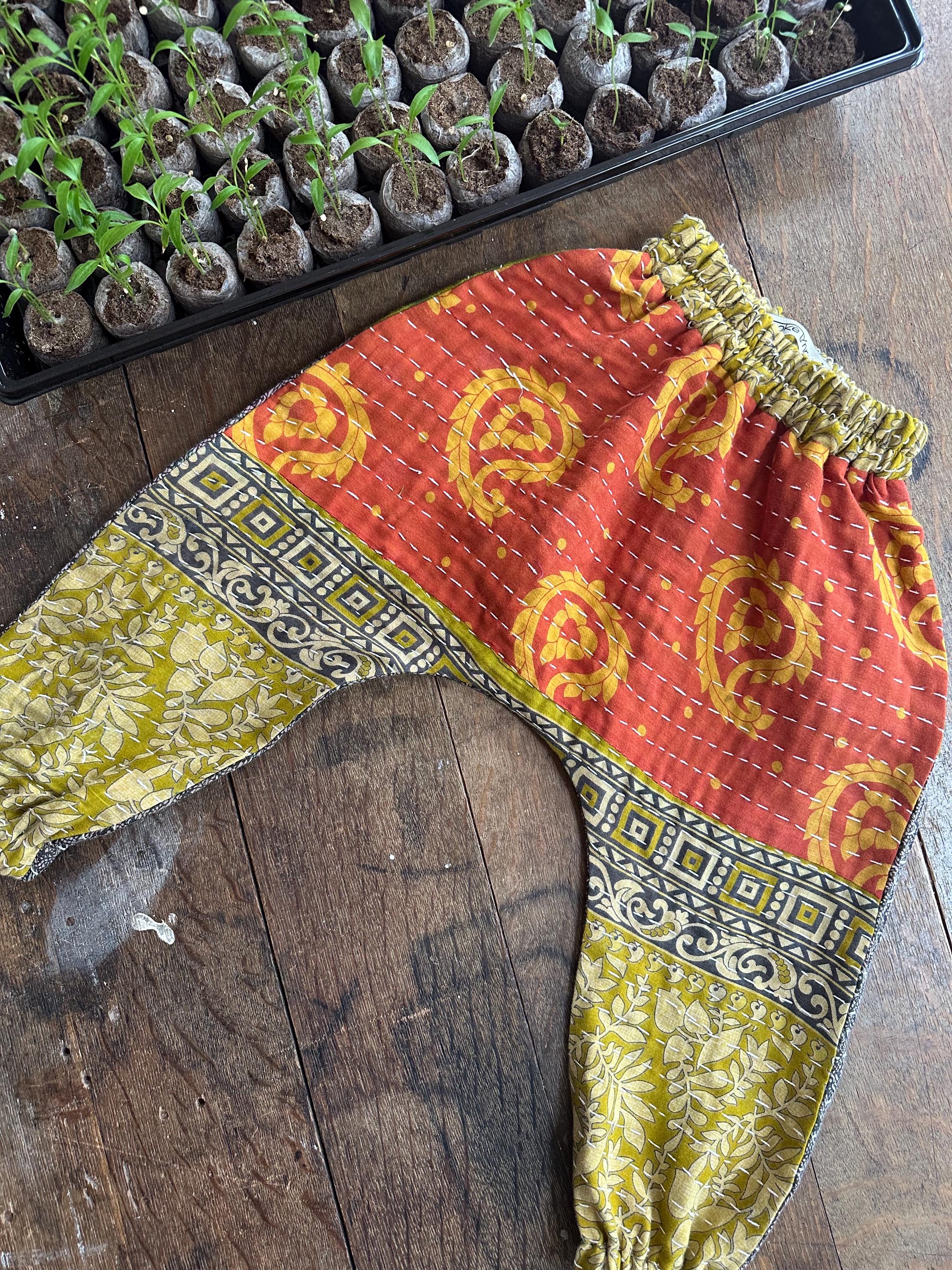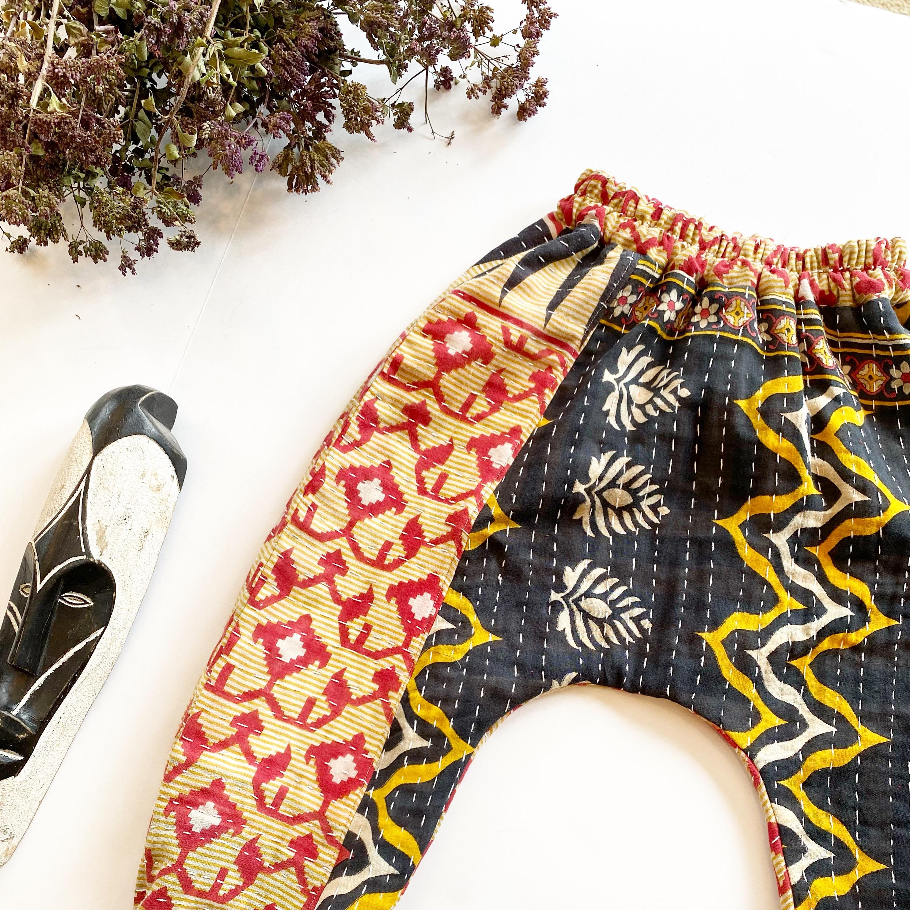 "On the move Moon Child!" Vintage Kantha harem pants? You got it mama! Everyone made is unique! Available kanthas are on the second description picture page....use the drop down box to choose number that coordinates....CUSTOM GOODNESS! It only takes me a week or two to construct and then shazam......on to you!