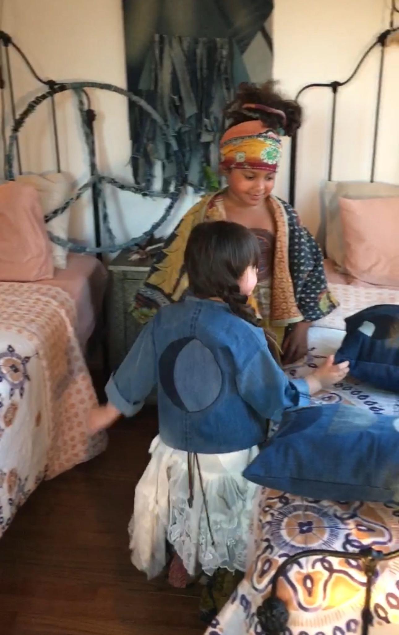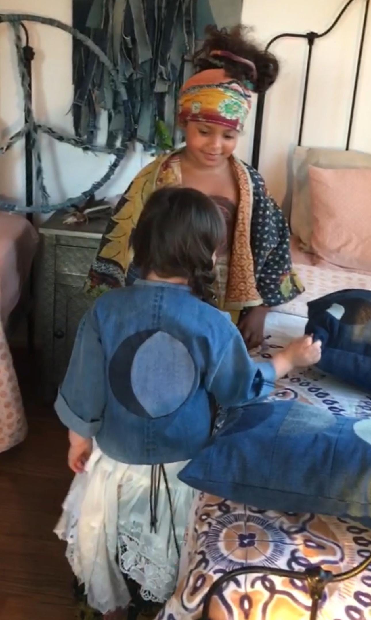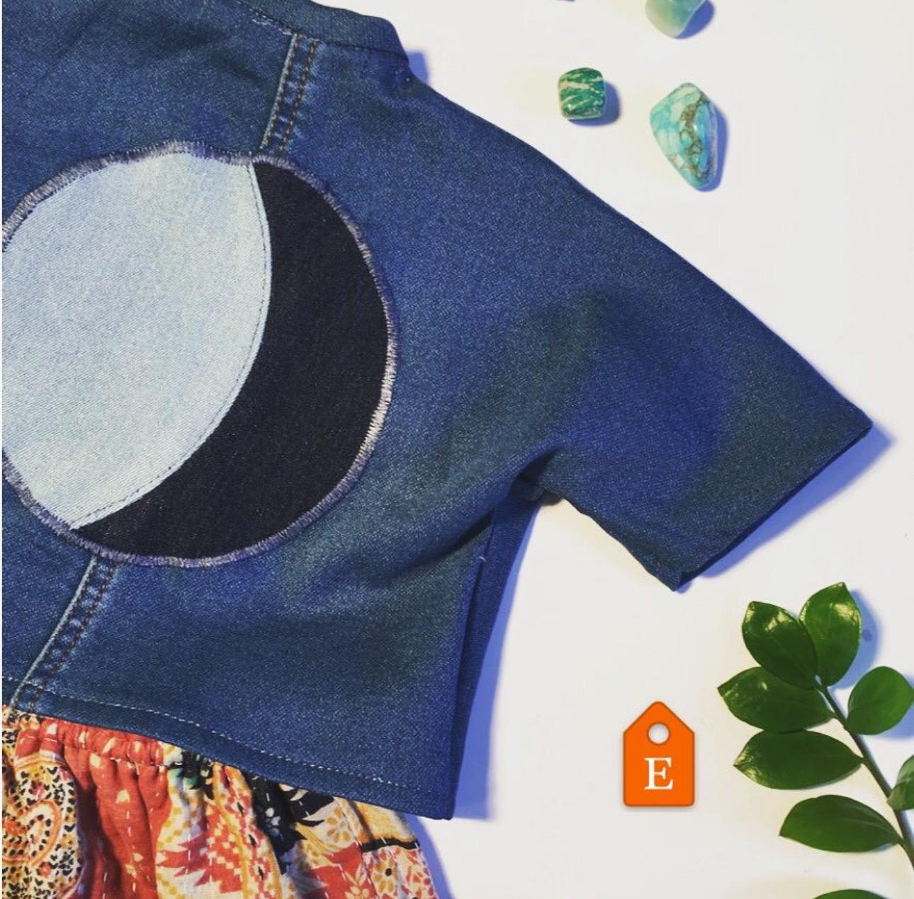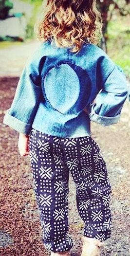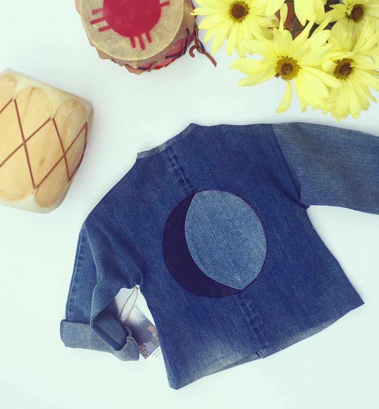 "Moon child, moon child.....look to the sun, you are my dearest, my sweet little one." Recycled denim will keep your little bohemian